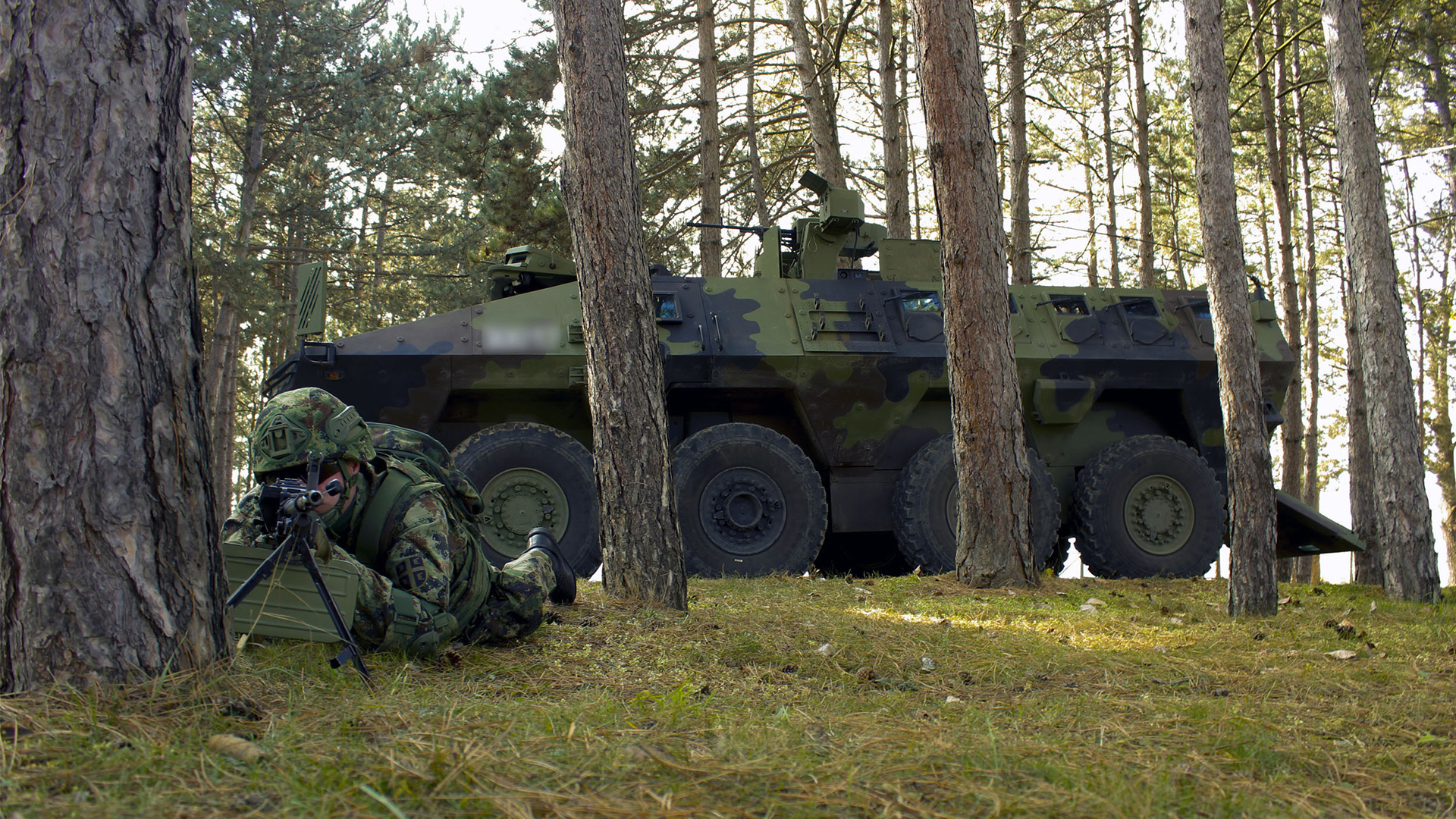 El artillero del LAZAR III opera la plataforma de armamento por control remoto (RCWS) de 12,7 mm.
